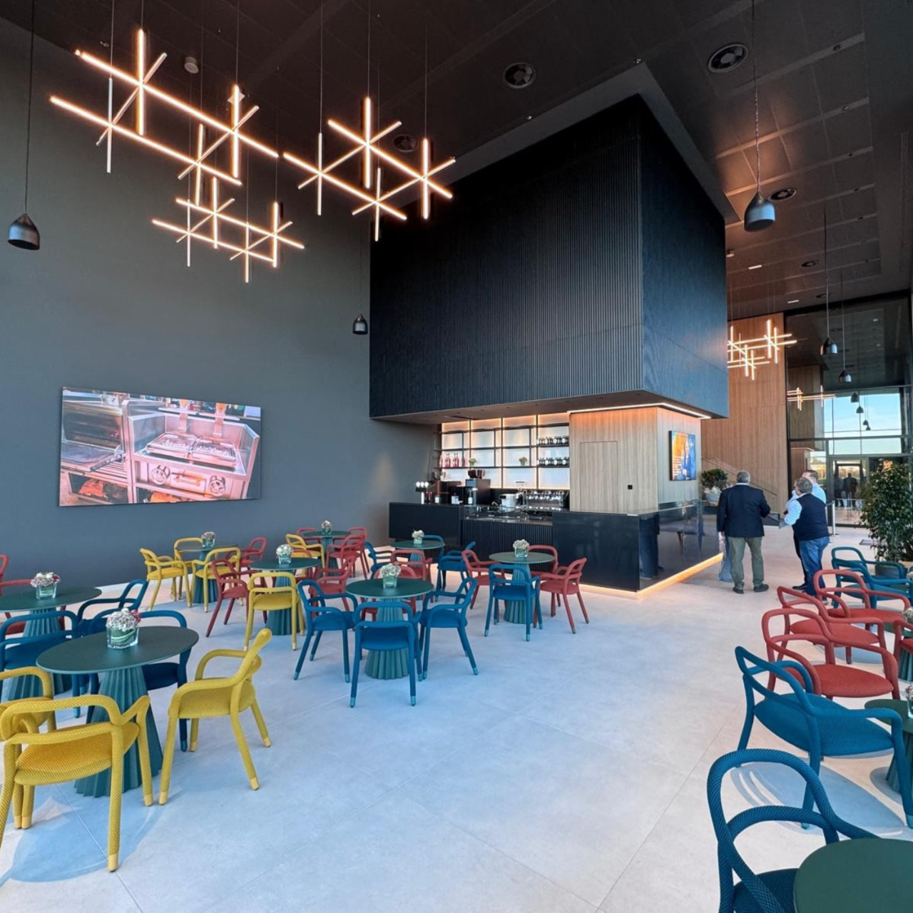 Odbiór techniczny połączony był z wizytą w centrum technologicznym grupy Middleby, do której należy Colussi Ermes. To miejsce, gdzie nowoczesna architektura spotyka się z filozofią zrównoważonego rozwoju i troski o klienta.